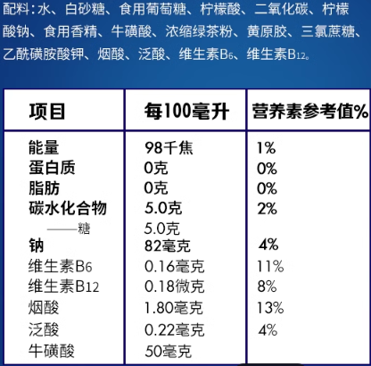 根據(jù)《GB/T10789—2015飲料通則》中的規(guī)定,功能飲料屬于特殊用途飲料的一種。其主要成分有咖啡因、?;撬?、瓜拉納、左旋肉堿、育亨賓、B族維生素、山梨酸、苯甲酸、甘氨酸、肌醇、三氯蔗糖、酒石酸鹽、麥芽糊精和其他糖類。
