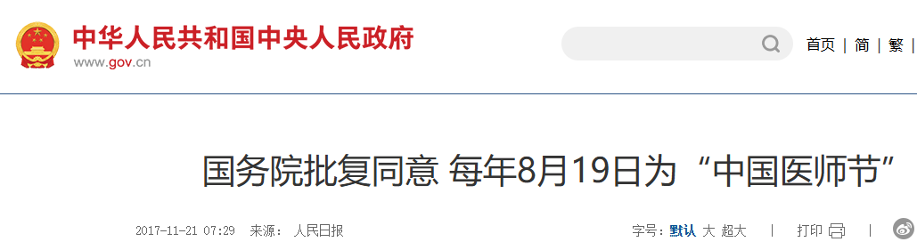 各位旅客朋友們,20240819次列車已到達(dá)第一站——2017年。這一年的11月3日,國(guó)務(wù)院通過(guò)了衛(wèi)計(jì)委(今衛(wèi)健委)關(guān)于“設(shè)立中國(guó)醫(yī)師節(jié)”的申請(qǐng),同意自2018年起,將每年的8月19日設(shè)立為“中國(guó)醫(yī)師節(jié)”。