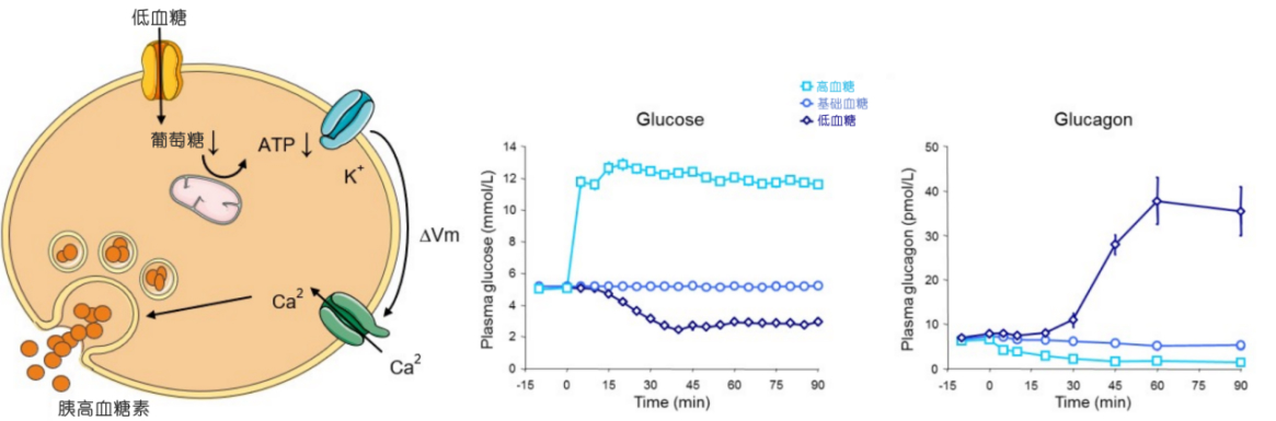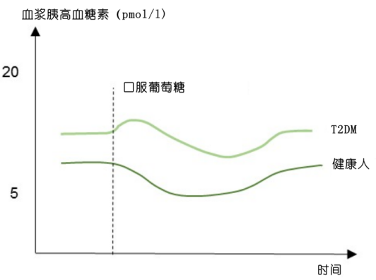 T2DM患者的胰高血糖素分泌調(diào)節(jié)功能受損,是導(dǎo)致糖尿病高血糖的重要原因。具體來說,T2DM的特點是空腹時胰高血糖素水平升高,而口服葡萄糖后胰高血糖素的抑制作用受損,甚至出現(xiàn)矛盾性升高。這通??山忉尀榈鸵葝u素血癥和α細胞的胰島素抵抗導(dǎo)致的胰島素對α細胞的抑制作用減弱。