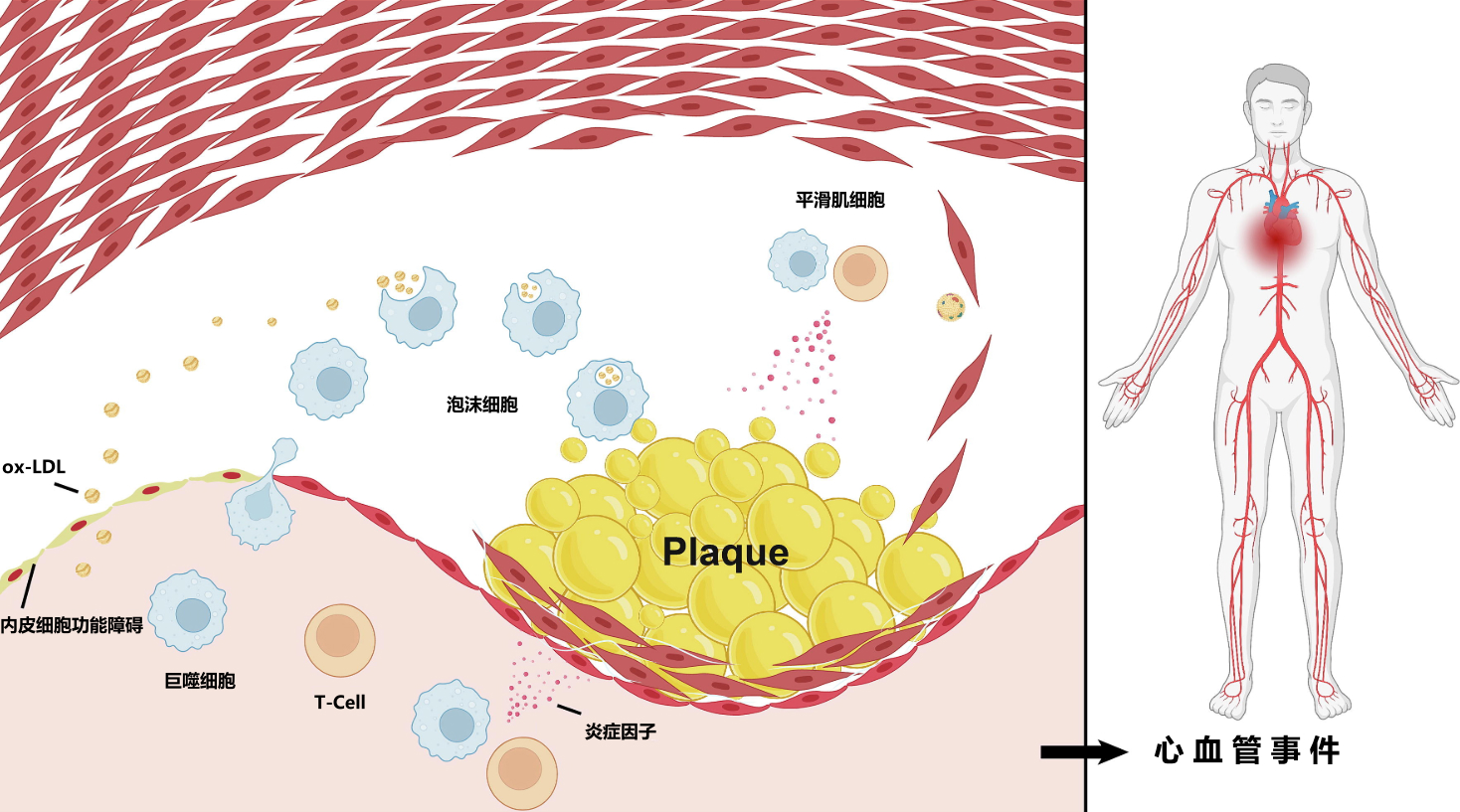 動脈粥樣硬化是一個(gè)復(fù)雜的病理生理過程,由代謝紊亂、脂質(zhì)積累和炎癥驅(qū)動。雖然在早期臨床上可能無癥狀,但動脈粥樣硬化病變通常會轉(zhuǎn)化為易破裂的脆弱斑塊,并引發(fā)隨后的不良事件,包括心肌梗死、中風(fēng)和死亡。